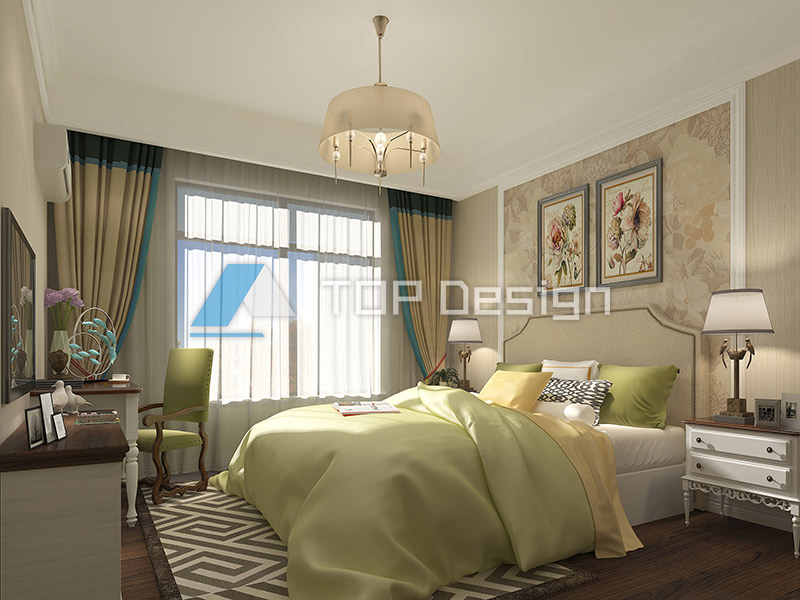 简约风格,并不追求华丽、高雅的美式简约风格。居室色彩主调为温和色。家具为古典弯腿式,家具、门、窗漆成白色。擅用各种花饰、丰富的木线变化、富丽的窗帘帷幄是西式传统室内装饰的固定模式,空间环境多表现出华美、富丽、浪漫的气氛。