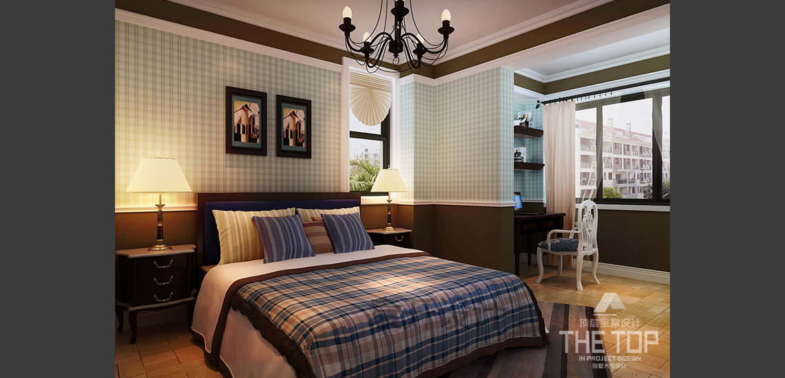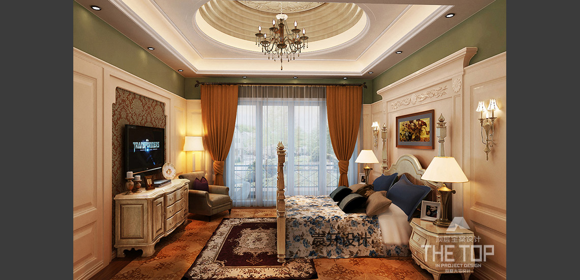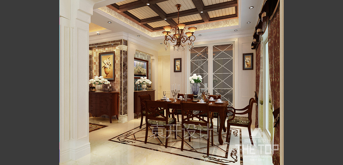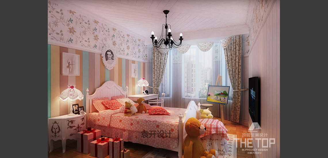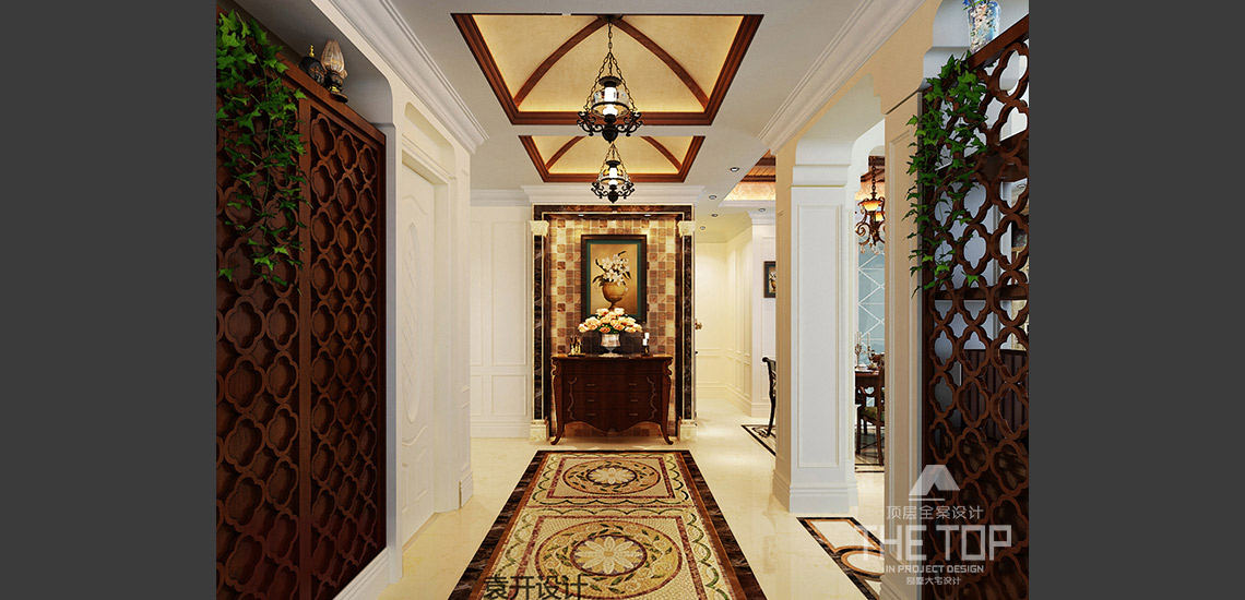 设计概念:本案是一个顶层复式,在格局的中式空间里,我们运用传统的中式实木家具,以及大理石的背景墙墙面,配合 上中式的画框墙板,在对称的中式美当中,不乏时尚和高档的中式装修。在主卧的空间中,打造半封闭式的书 房结构及吧台,在卧室里面也享用着休闲的空间。在儿童房及房间的内部中,运用的墙板的处理和颜色的搭配 上不仅使儿童房充满的童趣,也还原了一些白色中式的运用色彩。在整体的把握上,以中式的元素为主,搭配 暗纹的墙纸,更是使房间里有了味道和韵味,让人惬意,让人遐想...