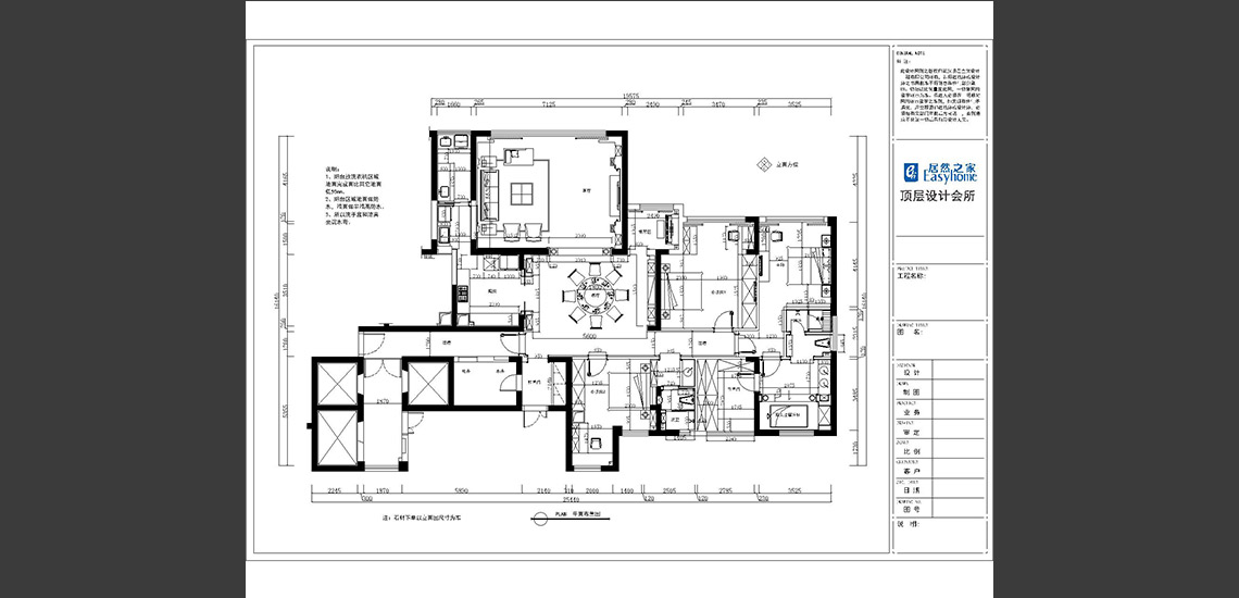 业主需求:业主喜欢高雅奢华的格调,一家三代人居住,需要两间小孩房,空间格局要大气,喜欢石材质感。