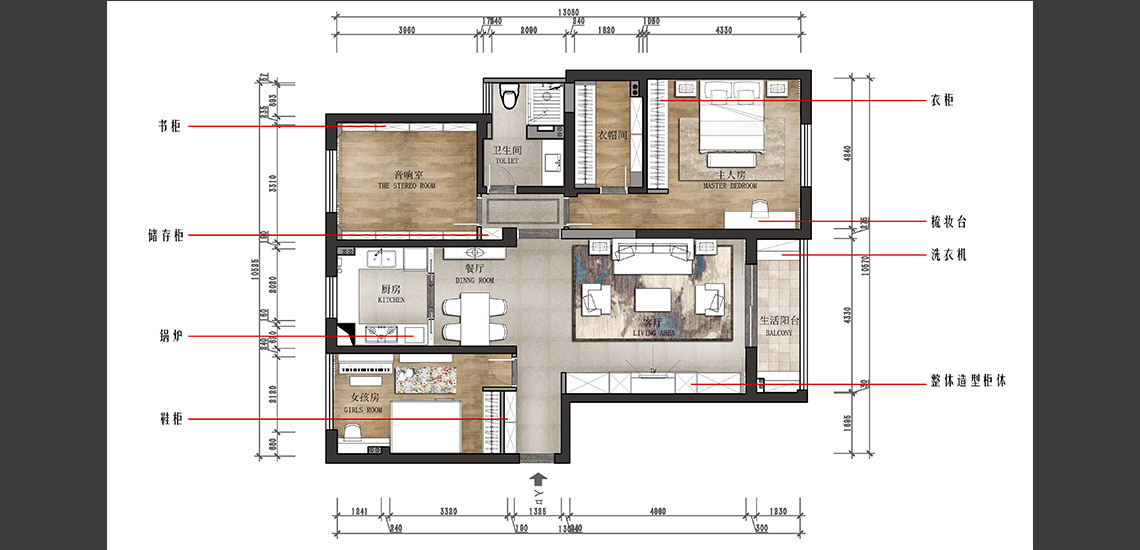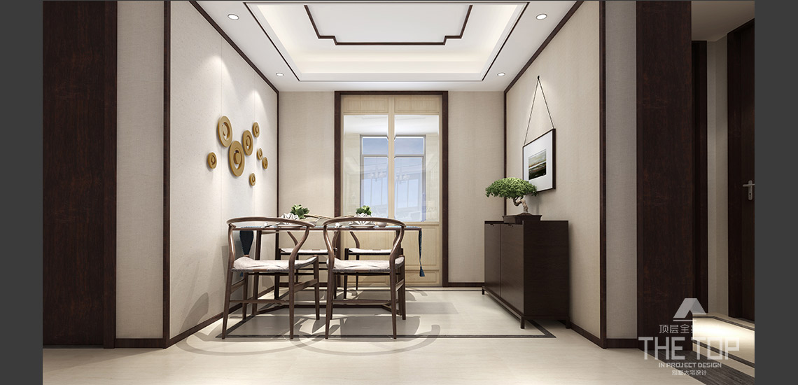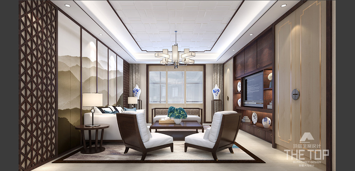 设计说明:这是本人设计雍豪府中样板间中的一套。设计风格现代中式。要求沉稳,大气,厚重。 本人在设计中特意把中国画中的“留白”这个寓意加入设计中。强调画面感。