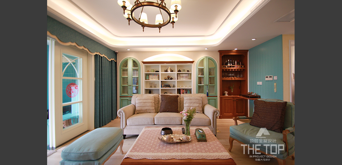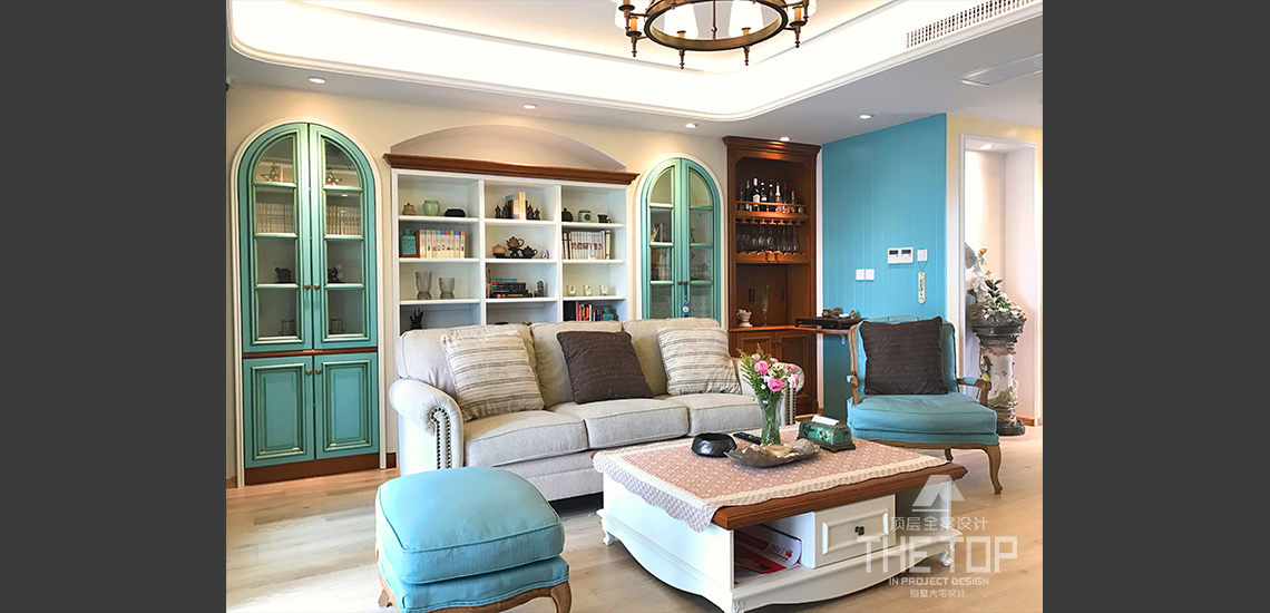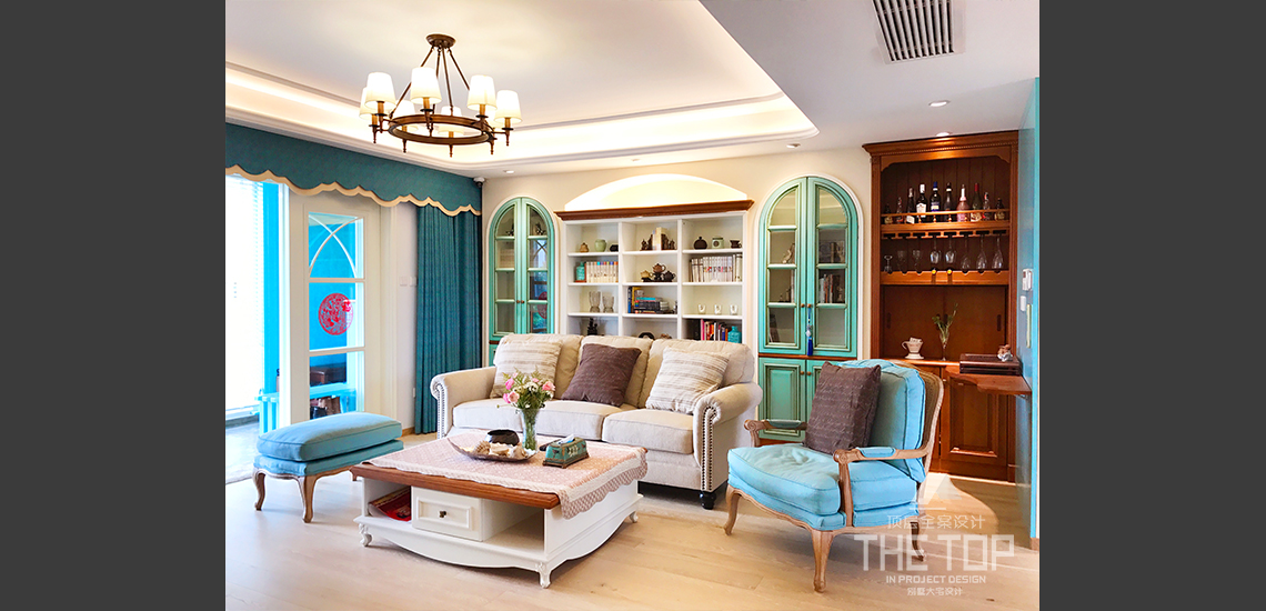 设计概念:本案是一个地中海田园和新中式相结合混搭风格。在空间的布局方面,没有做大面积的改动,在细节和功能形 式上结合业主的生活方式做了细微调整。是空间更合理使用。格调方面,定位是前冷色系,想营造地中海田园 的休闲调性。背景色采用了浅暖的米黄色和浅蓝色作为背景色,温馨自然,在主题色方面运用色灰色调和白色 来做为主题色,调和成清新的调性。当在午后在吧台的一侧沏一杯咖啡,伴随着清香,品尝生活带来的舒适愉 快。也许这就是生活。