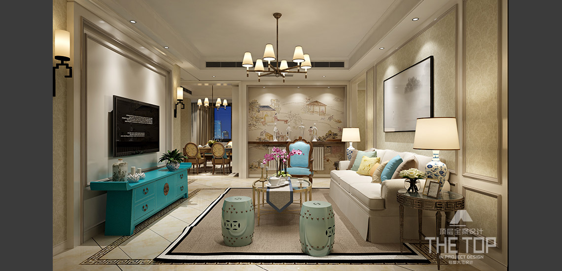 设计概念:本案是一个美式和中式相结合混搭的风格。业主是一位30多岁的成功人士,因为长期出差的缘故,对于悦榕庄 和四季酒店的装修风格甚是喜欢,在装修风格上也很有自己的见解,要求想要在随性休闲的美式风格中参杂一 丝中式的朴素和雅致的格调在其中。结合客户的要求我们最终将本案的设计定位与以美式为主,在软装配饰方 面加入一些中式的元素,把这两种截然不同的风格相结合且又不失合理性。