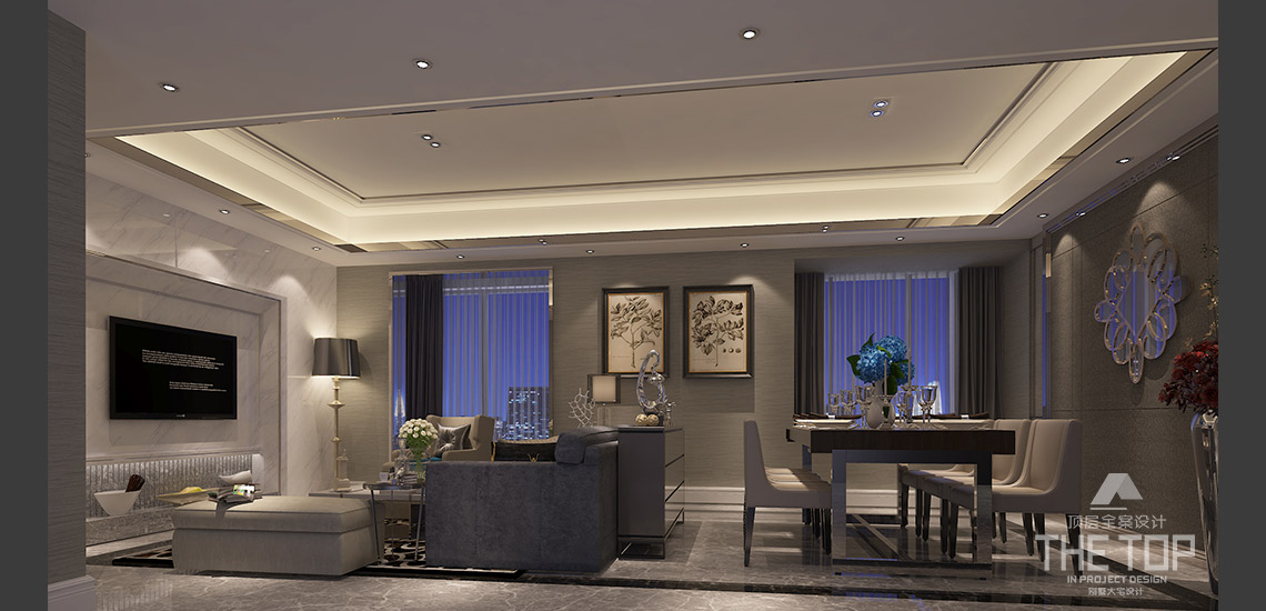 设计说明:港式风格多以金属色和线条感营造金碧辉煌的豪华感,简洁而不失时尚。现代与华丽的碰撞总能带来意想不到 的审美体验,本案将简约精致的港式设计手法中加入奢华唯美的装饰元素,从大理石、铜边和现代港式家具中 呈现现代与港式的融合,在满足现代便捷生活的同时不失雅致,整个空间简约大气,低调而内敛。