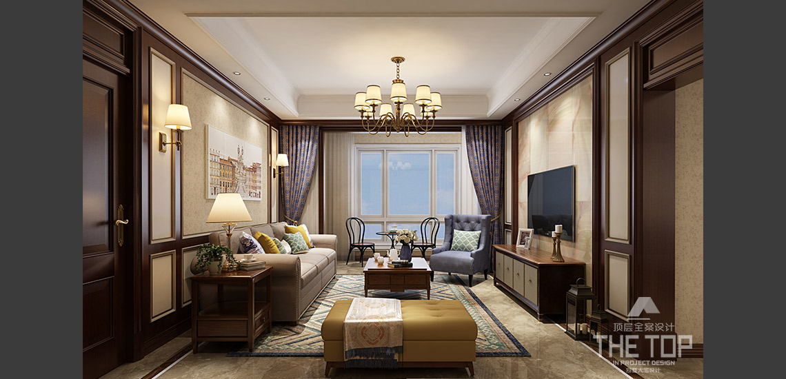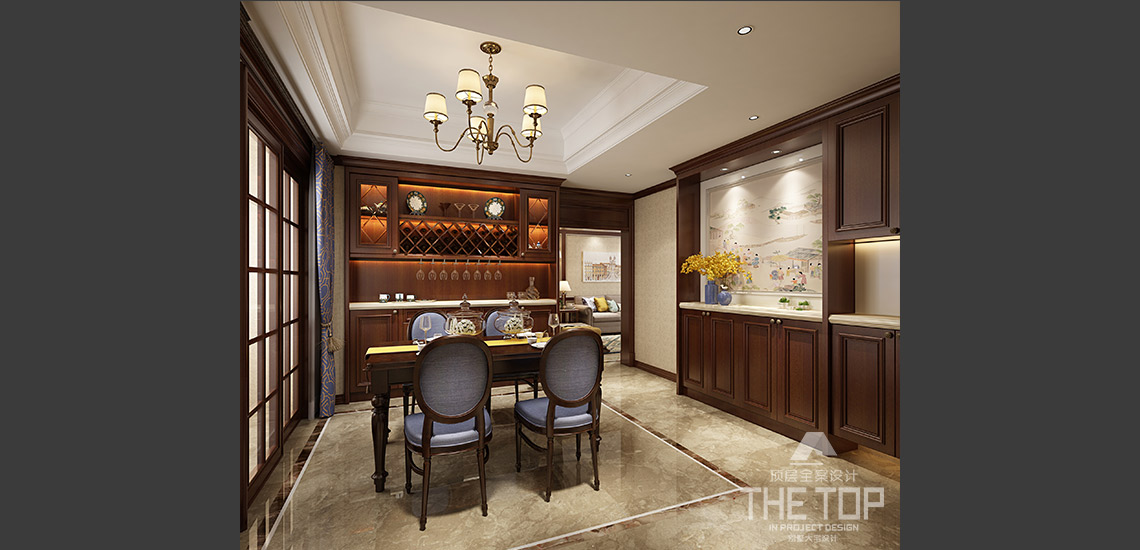 设计说明:美式古典风格植根于欧洲文化,它摒弃了巴洛克和洛可可风格所追求的新奇和浮华,建立在一种对古典的新的认识基础上,强调简洁、明晰的线条和优雅、得体有度的装饰。设计师除了继续保持传统的深木色外,还采用了黑、白和浅木色等颜色的配饰。加入浅色的深色美式古典风格,不再让人觉得沉闷,而在视觉上让人顿生焕然一新的感觉。