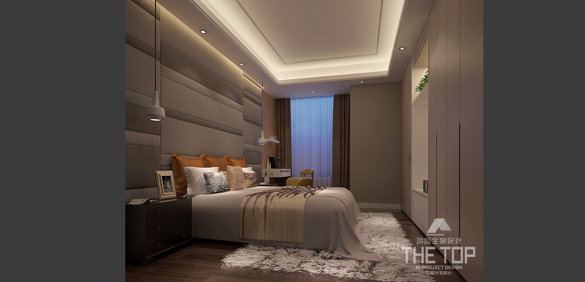 设计说明:本案系一套色彩淡雅的简约欧式混搭美式的设计风格,浅色的护墙板配合暖色的石材及墙纸,多种质地的材质 营造出典雅高贵的气质!色彩上虽然是一派高调的设计风格,但是设计师绝不是无脑的使用一个颜色,而是在 浅色系中游走,白色、浅色大理石等等,其中不乏穿插绿色、咖啡色等深色的色彩!这就是所谓的大面积协调 小面积对比的道理!在家具及软饰的选择上也十分配合硬装,最后融合在一起和谐自然、大气高雅。