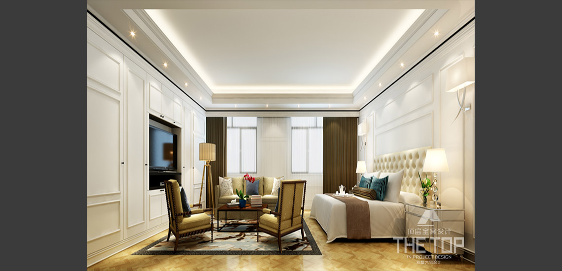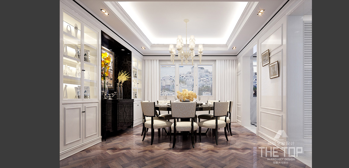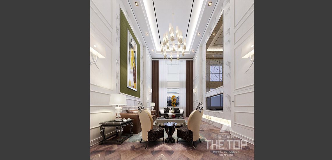 设计说明:本案以欧式风格为主题,在设计上追求空间变化的连续性和形体变化的层次感,整体以欧式和后现代的手法进行设计,简单的线条和几何图案,与局部的相对繁琐形成鲜明对比,带给我们不一样的视觉及触觉享受。色彩上以经典的米黄色与白色为主导,再加上大理石、雕花隔断、硬包、壁纸、木饰面、钛金条等材料的贯穿融合,既突显空间的凹凸感,又表现出现代时尚和优雅高贵,符合中国人的审美价值。