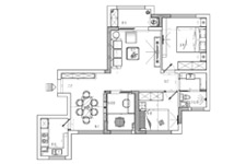 该设计以现代时尚的手法来诠释新中式的唯美意境。整个空间设计布局开阔大方,大范围的白色空间以及现代材质运用,使室内显得宽敞透亮,淡雅清灵,符合样板房展示空间感的要求。另外,在这种现代的空间内,部分造型与装饰又运用了新中式窗棂、布艺屏风等中式元素,从而使空间内又饱含有一种空灵脱俗的东方之美,正可谓“清水出芙蓉”。 客厅设计充满着现代的随意性与古典气息,甚有特色。由几幅布满中国传统鸟语花香图案构成的背景墙在客厅设计中最引人注目,与茶几沙发、中式角柜太师椅相匹配,在四周柔和的灯光照耀下,客厅空间层次分明、静谧淡雅。随意摆放的茶具、陶瓷装饰品以及台灯等,晶莹剔透,质感丰富。整个空间中,中式古韵与现代时尚相搭配,使人不觉运用现代思维来细细玩味。